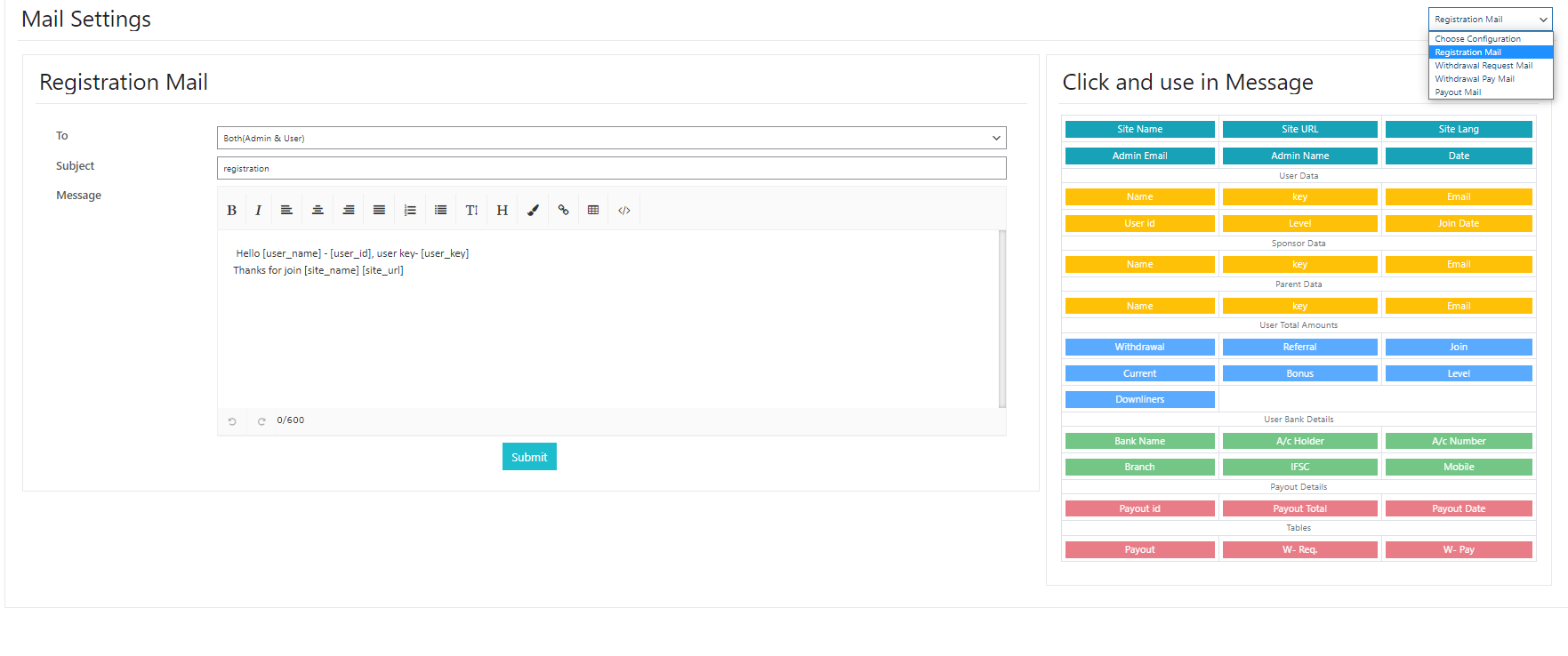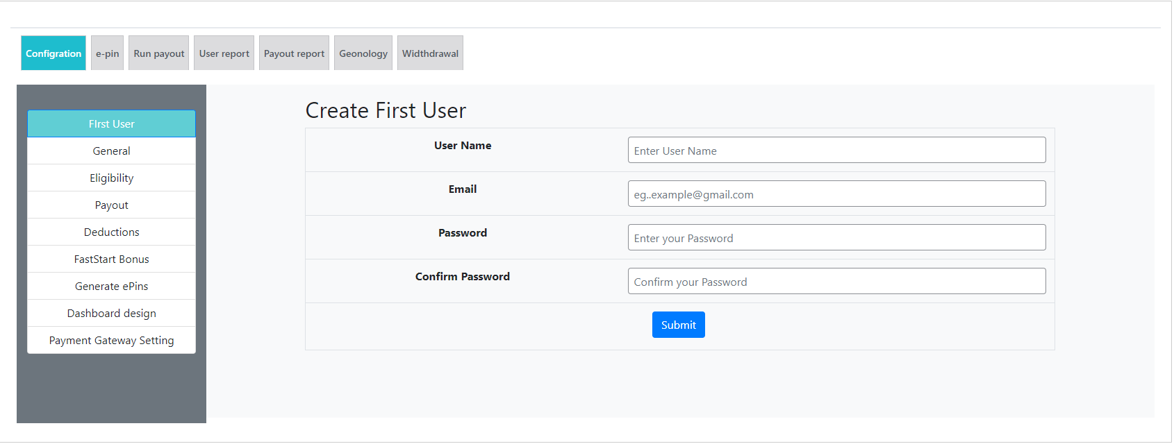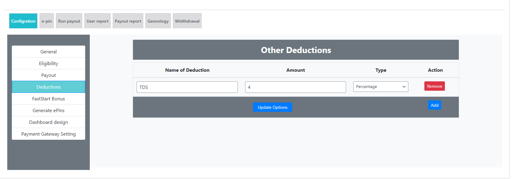 - Re-Join Commission --> This amount will be credit in each user’s account and that commission only When user rejoin in network in user’s account.