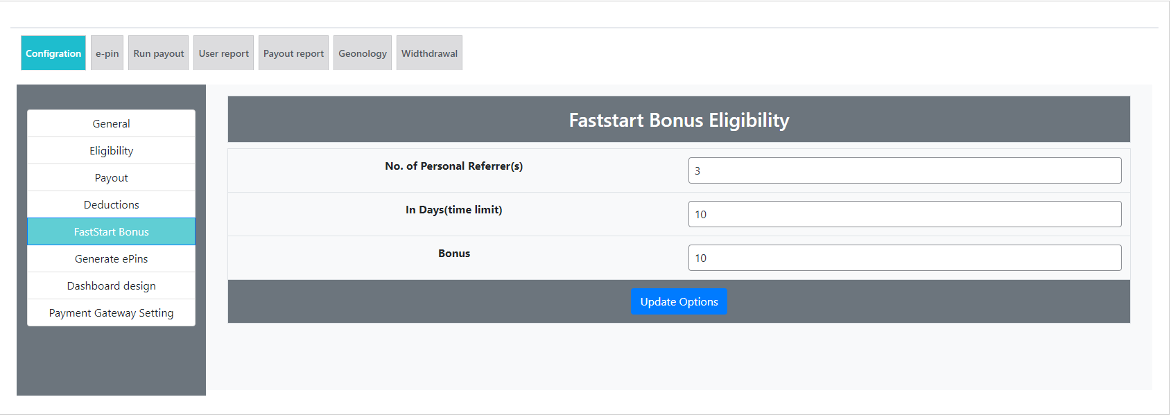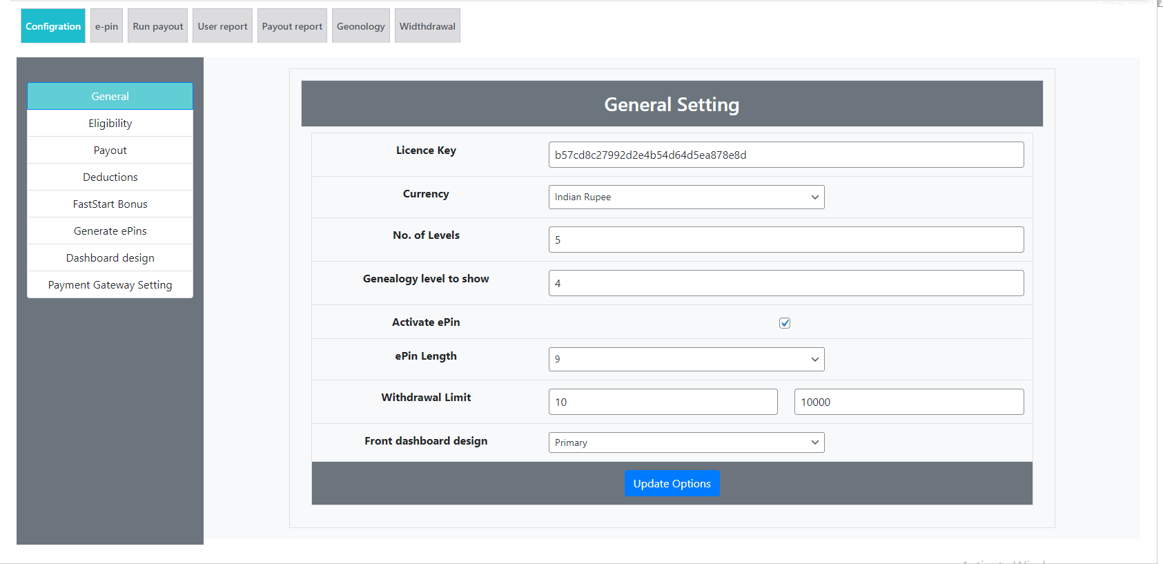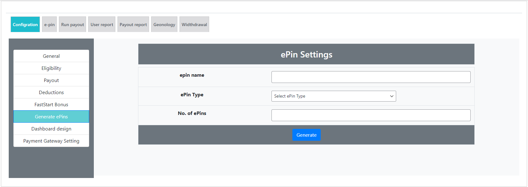 - Activate ePin --> If you checked this you can create epin free/paid and user need epin for registration.