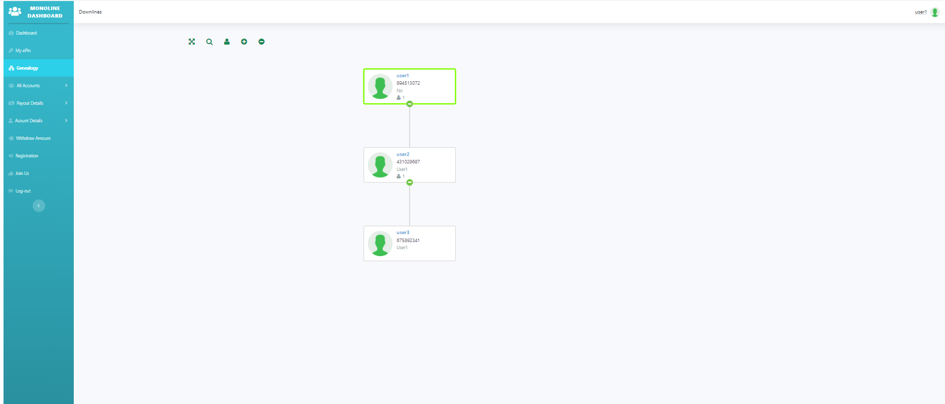 - User 2 and User 3 Parent is User 1 and user 1 is on 1st Level