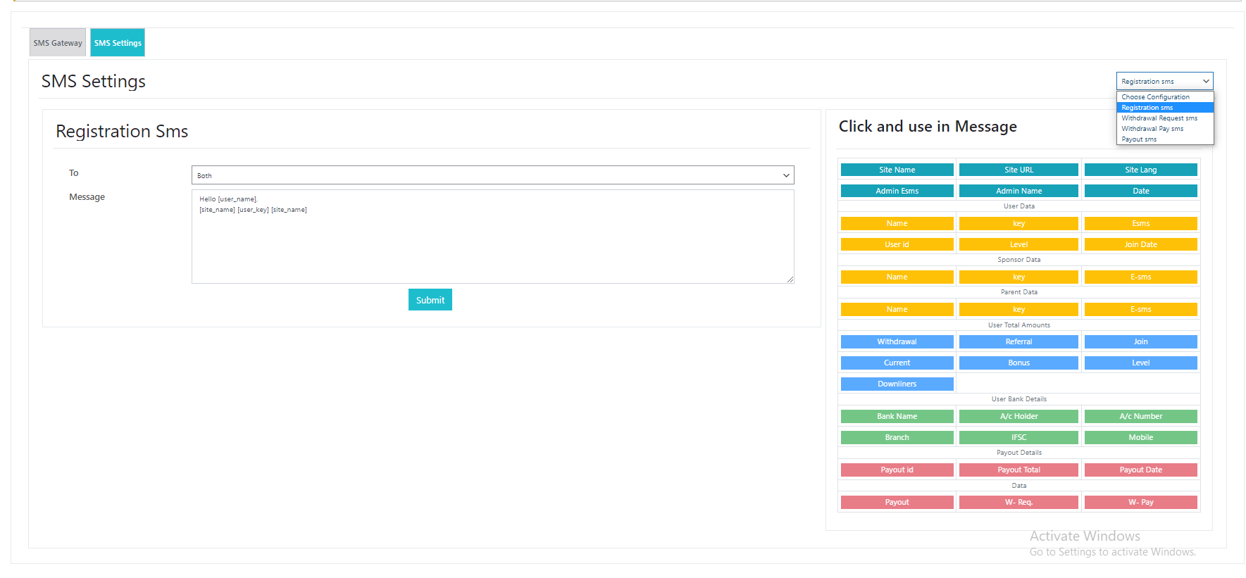 Click on Gateway button to see gateway settings,In our system we have developed three SMS gateway.