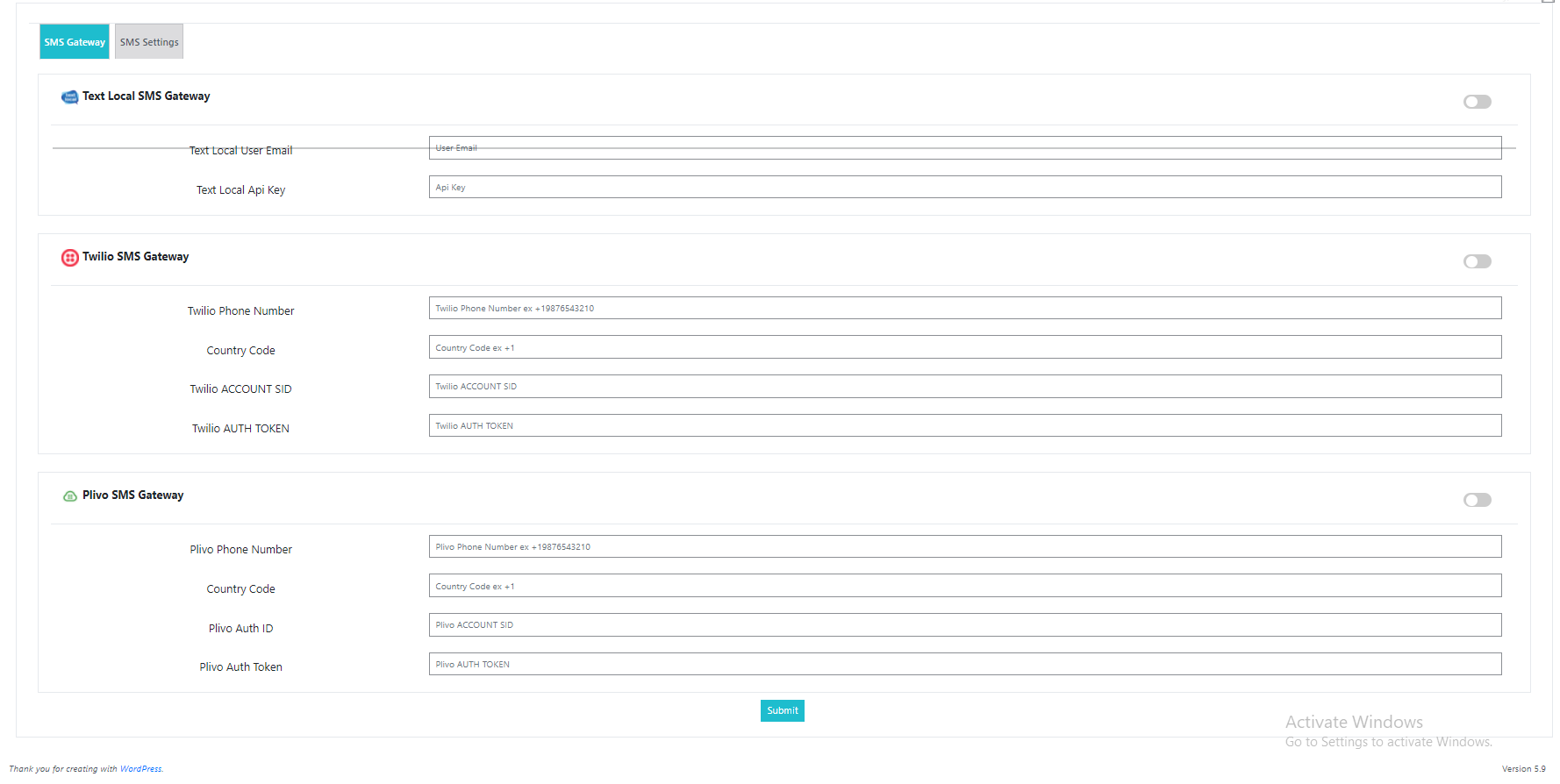 - To use Plivo SMS gateway fill all the credential of Plivo SMS gateway