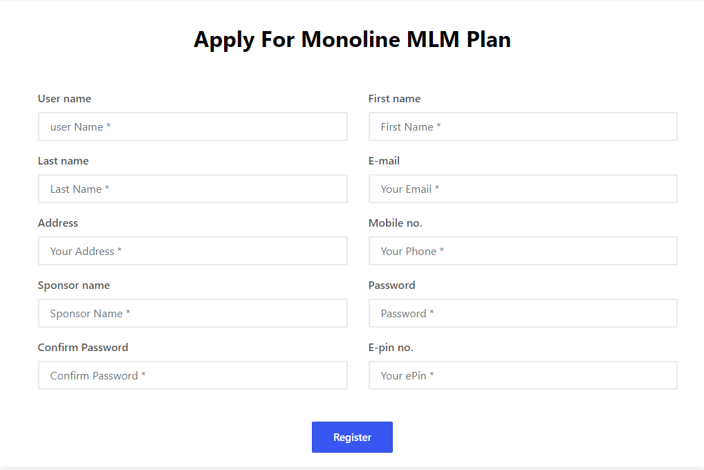 - Sponsor name--> Enter your sponsor name, sponsor is a person who refer you in this plan.