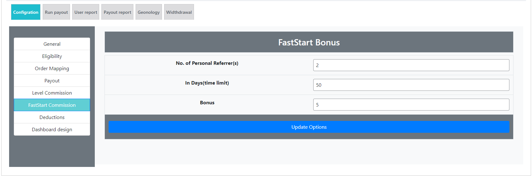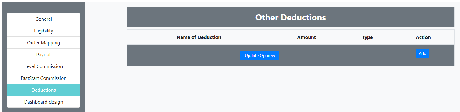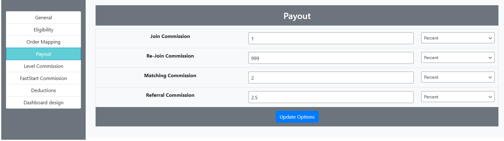 | Re-Join Commission | When same user orders again | Sponsor or Upline | Fixed / Percent |