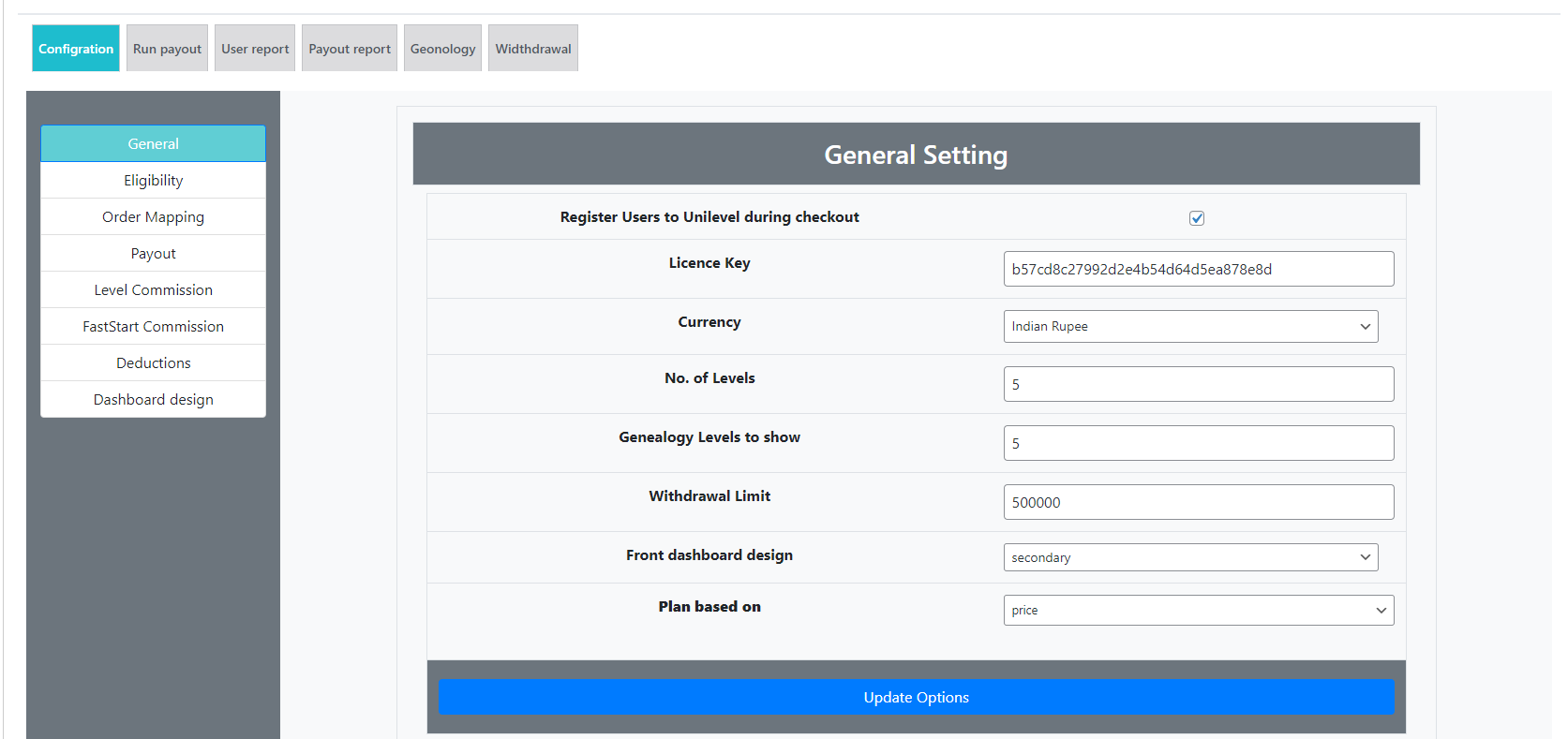 - Enable Level Commission --> Cheack this checkbox if you don`t want to distribute Level commission.
