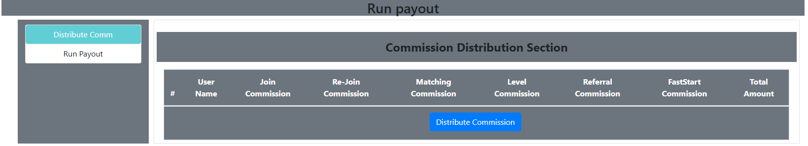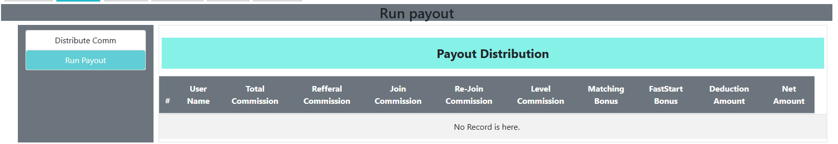 - Distibute commission >>After the clicking of this button the all commission is show in run payout .
