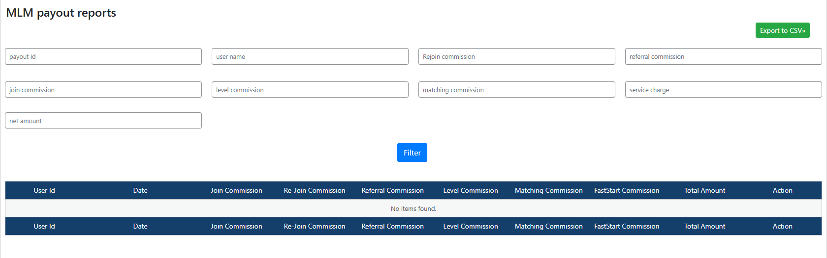 Go to mmw > User Report. Here you will see user reports listing with total comissions, bonuses and deductions.