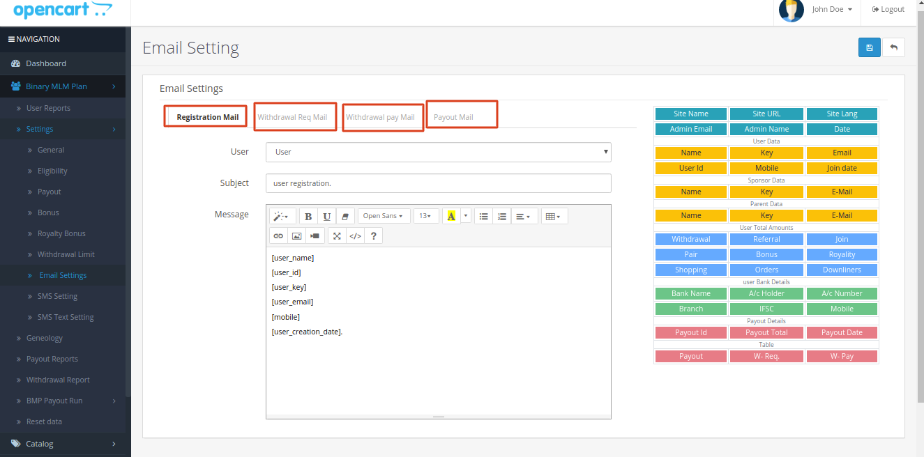 - Withdrawal Req Mail: Trigger a mail when mlm customer will be withdrawal request .