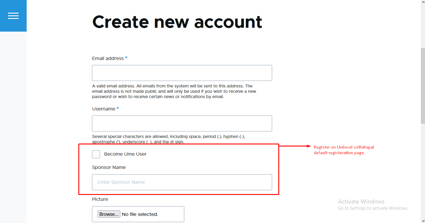 Unilevel Registration Page