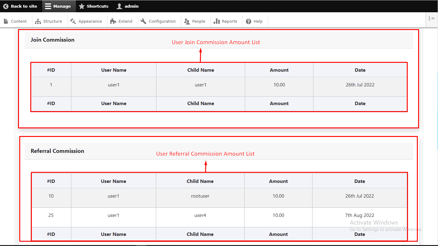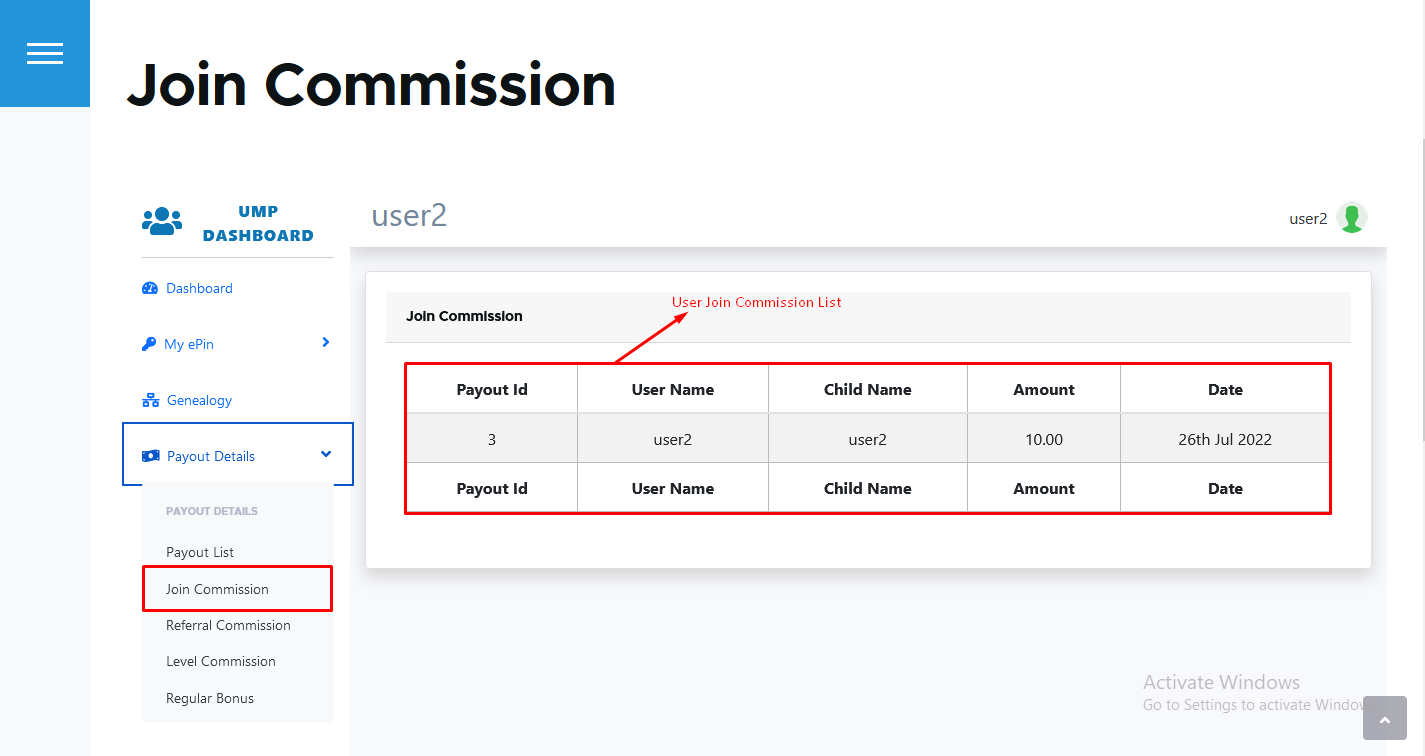 - Join commission :- Here you can see join commision of user.