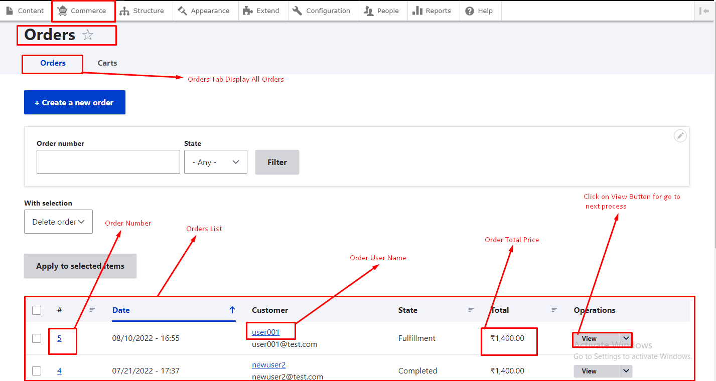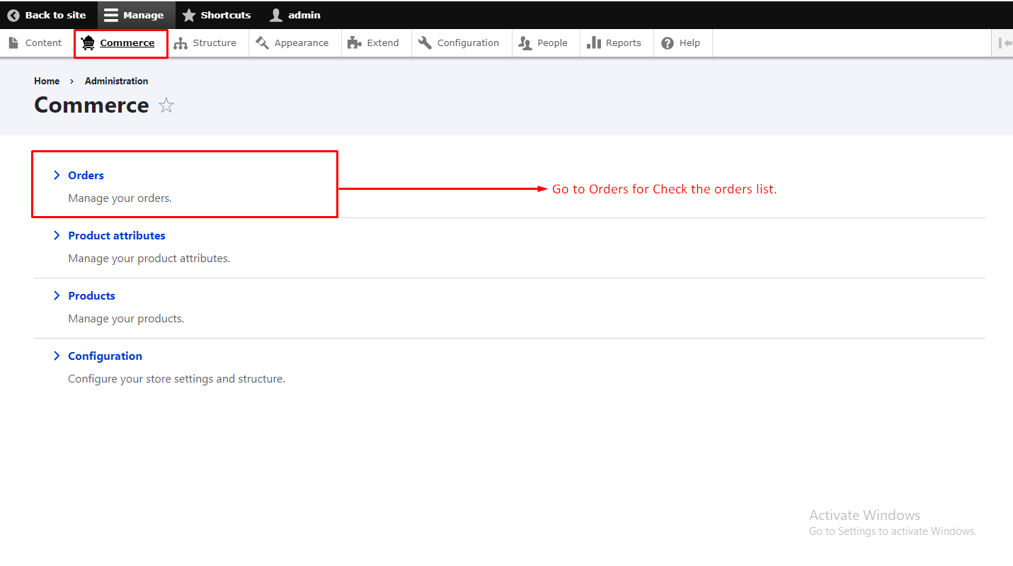 - Step 1 :- Go to Commerce tab and Oen Orders (Manage your orders) Option as shown in below figure.