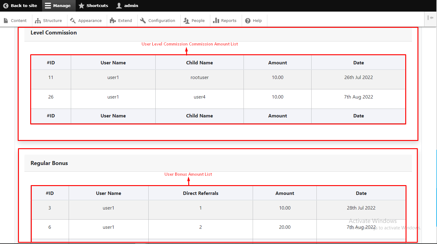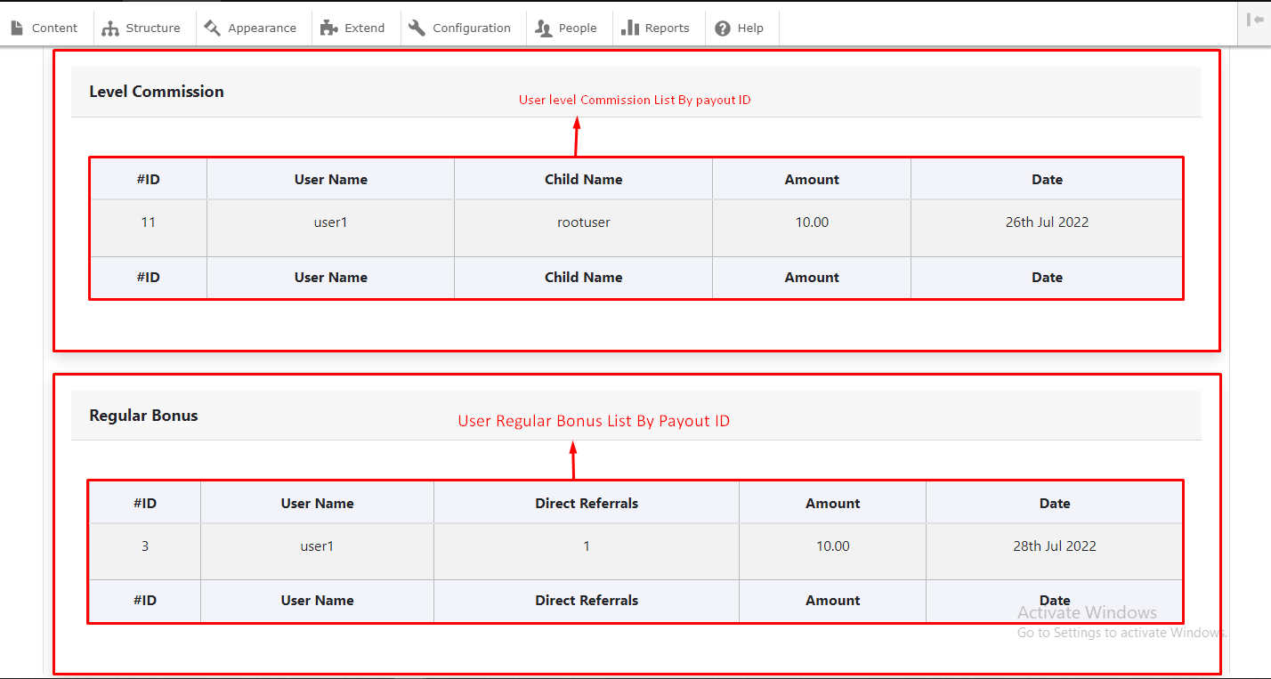 - regular Bonus :- Here you can see regular bonus of user.