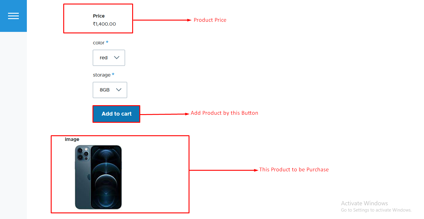 - Step 1 :- Open the Product Page as showin figure. but first create the product from Admin then the Product will display on frontend page.