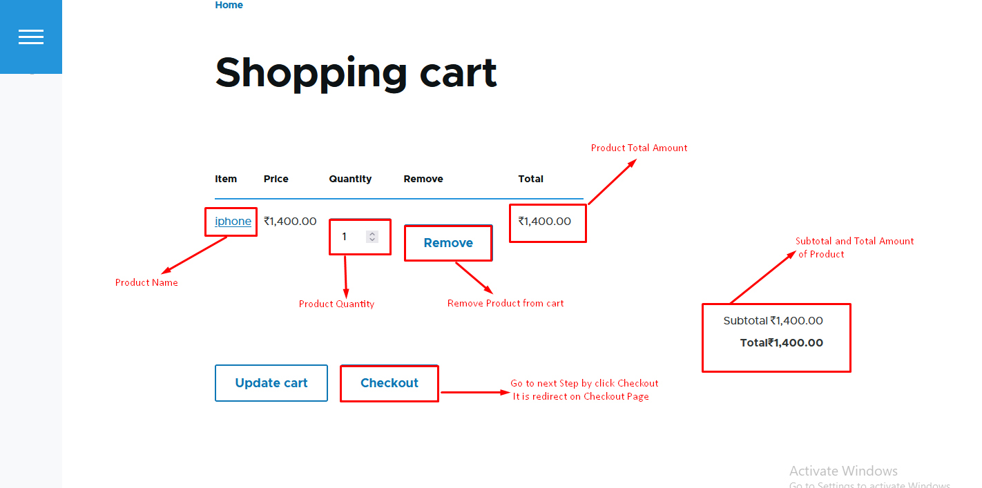 - Step 2 :- display the product product information in shopping cart.