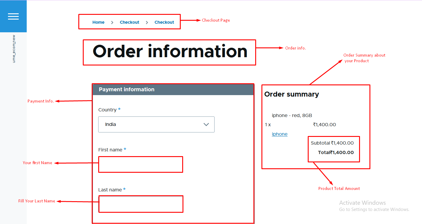 - Step 2 :- Order Information page add in payment information and add review.
