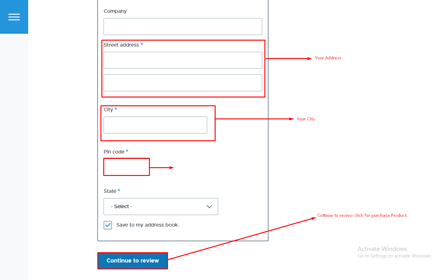 - Address --> Enter the Address.