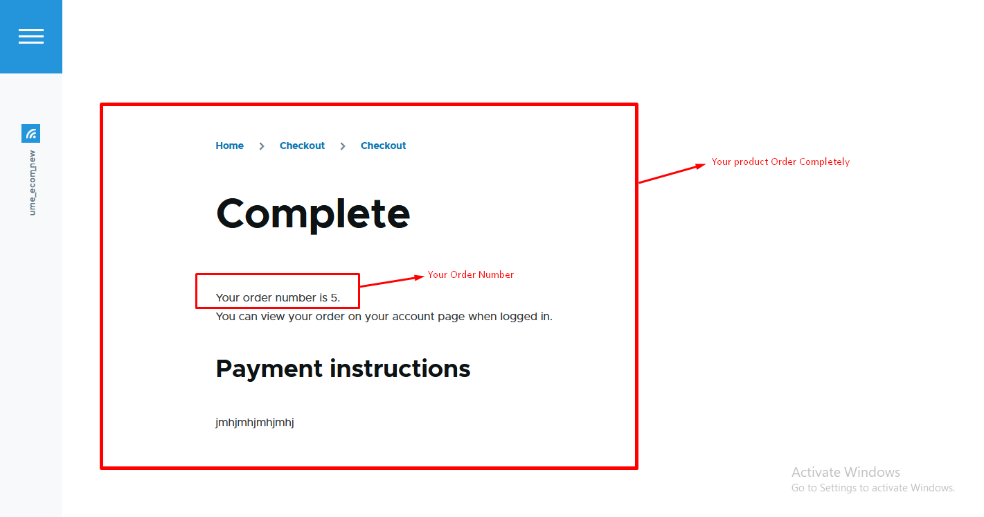 - Step 4 :- display order complete information and order number is also diplay.