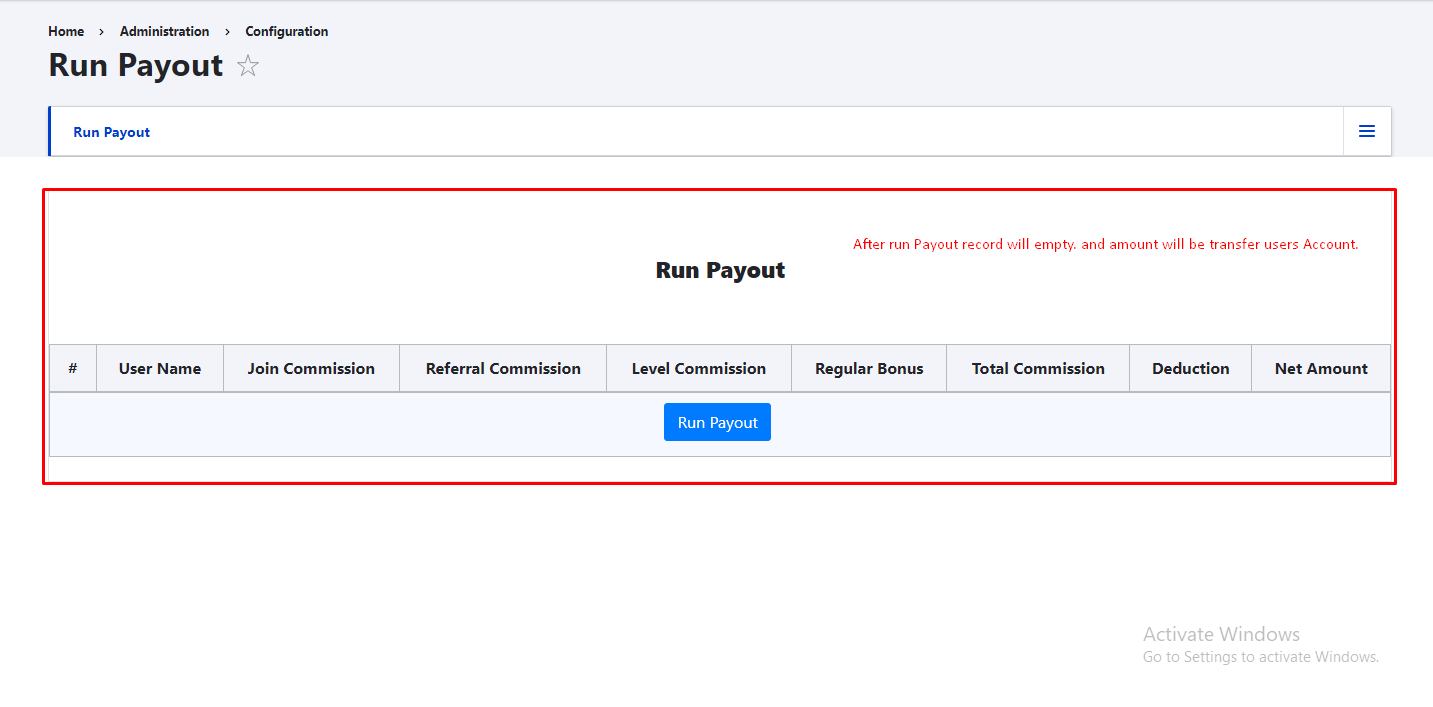 - After Run payout successfully records will Empty in run payout Process.