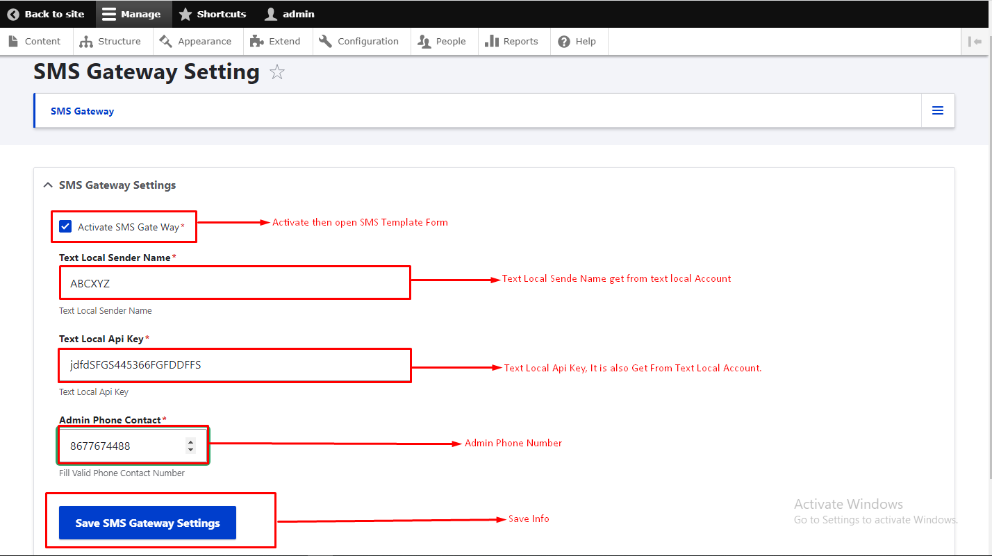 - To use TEXT LOCAL SMS gateway fill all the credential of TEXL LOCAL SMS gateway