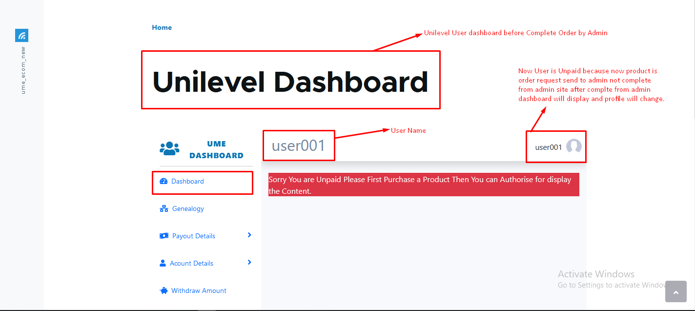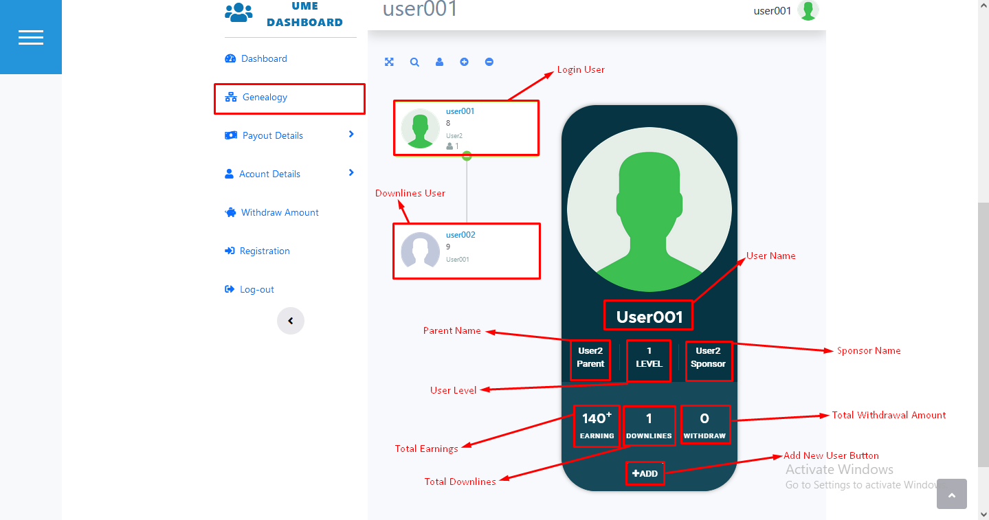 Unilevel User Dashboard