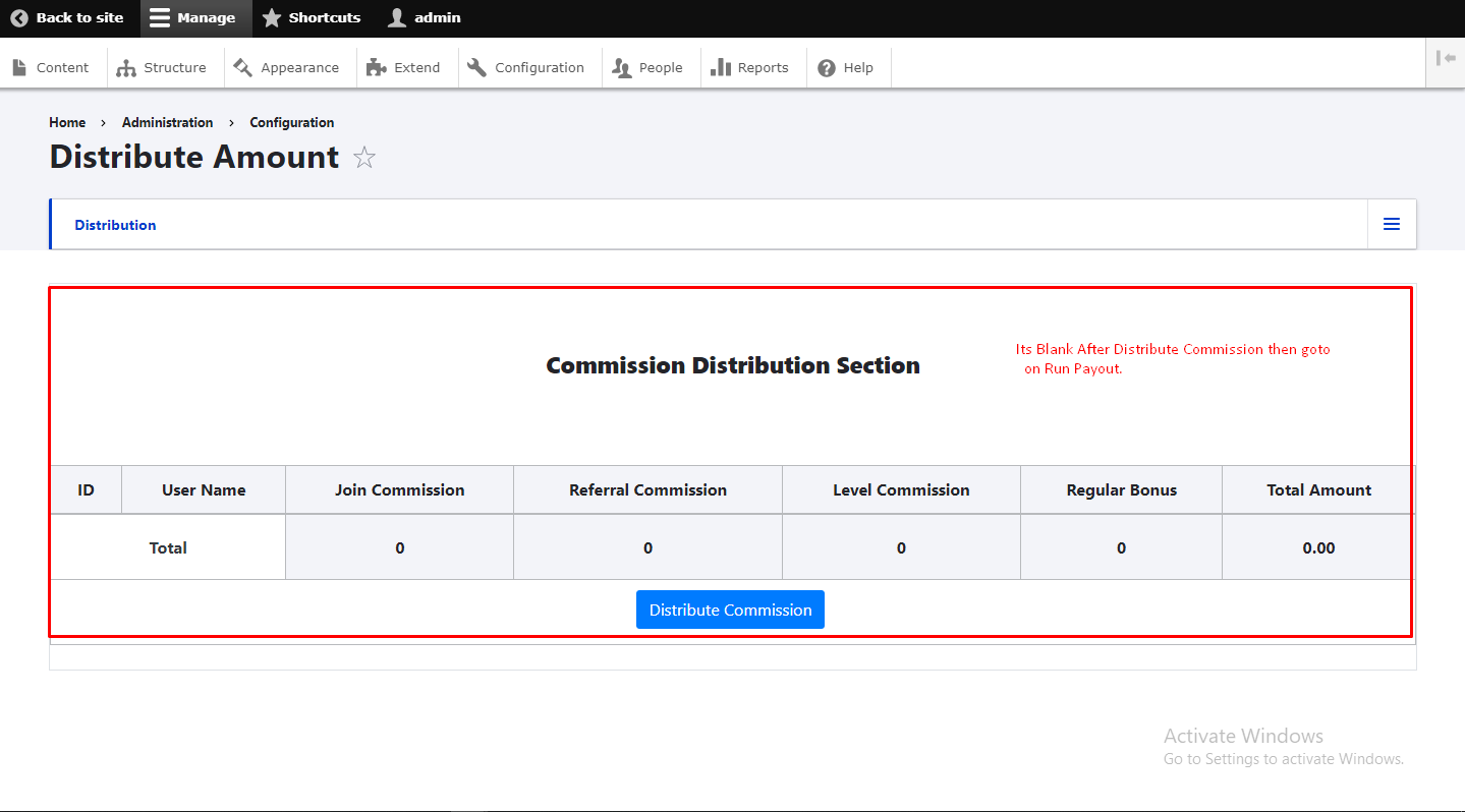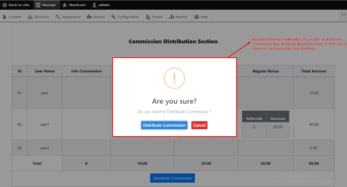- Successfully distribute commission PopUp Message if commisssion distribute successfully.