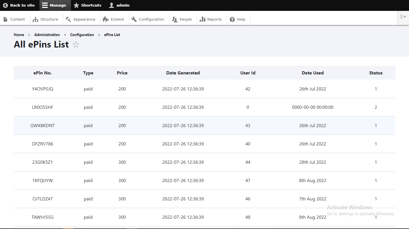 - Activate ePin --> Fill cheackbox for active ePin , if you do not activate ePin then do not reuired ePin for Registration and Become Mlm Plam Member and do not get Commissions.