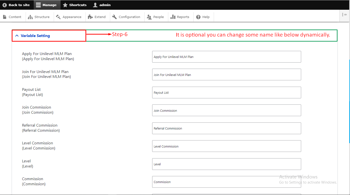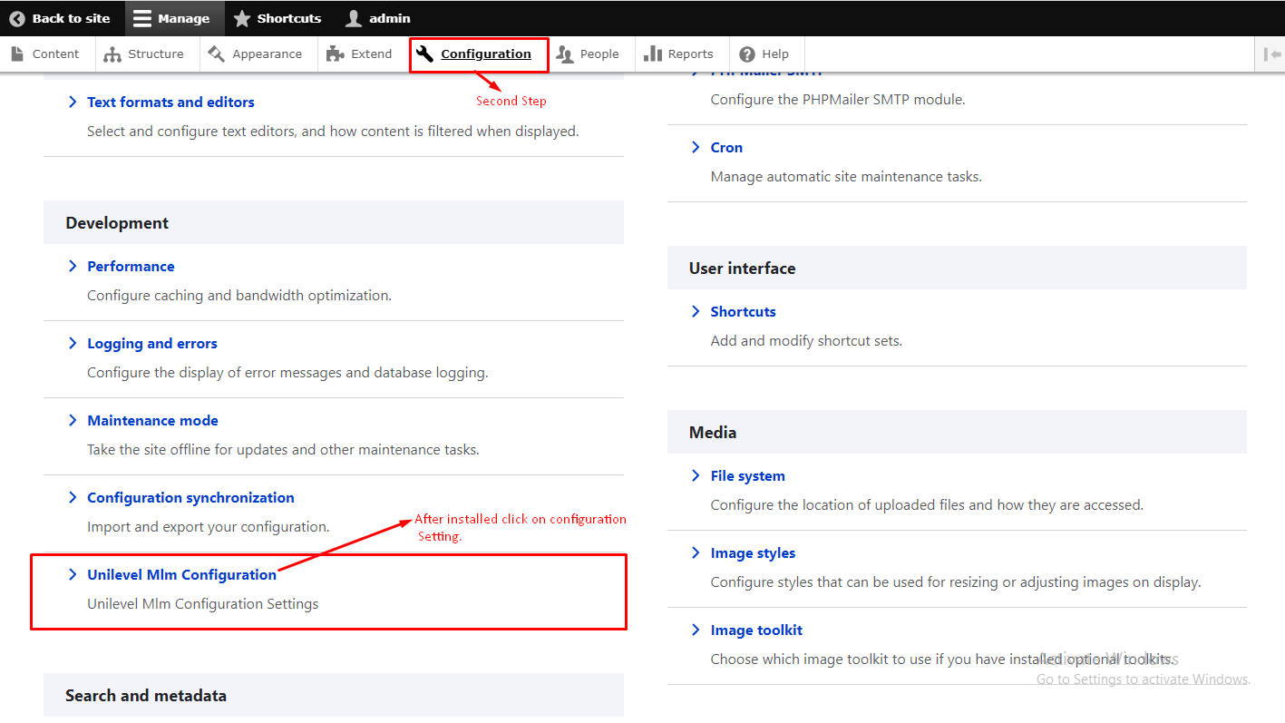 Installed Unilevel Mlm Modules:- You will go to Extent Tab -> Add new Module -> upload .tar.zh file of unilvelmlm modules and continue. After Upload Unilevel Module successfully. You have to go again in Extend tab in menu then scroll our module will displa in Custom with name of Unilevel Mlm Plan then Installed, But before Install Unilevel Module You will installed onse is (smtp), second is (phpmailer smtp) Modules then it will installed otherwise it will gives error of installed these two Modules.