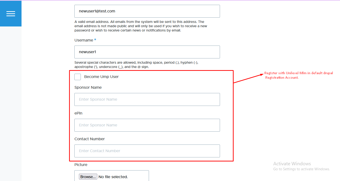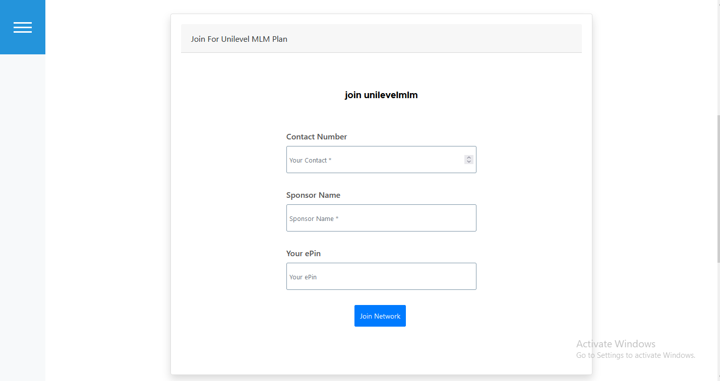 User can Register for beocome Unilevel Mlm Plan Member as hown in below figure.
