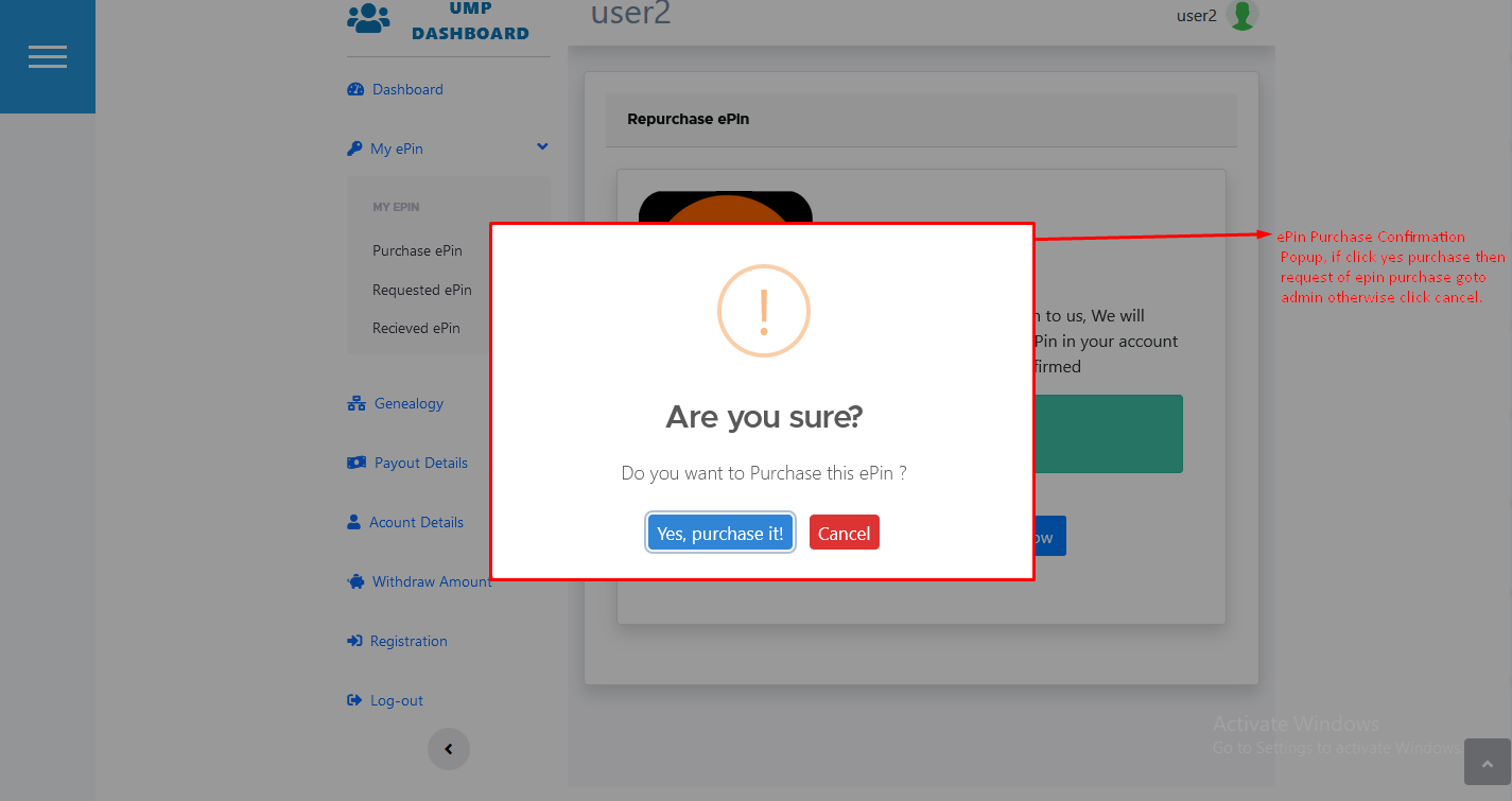 - Step-3 :- Open Pop Up Purchase Epin click Ok