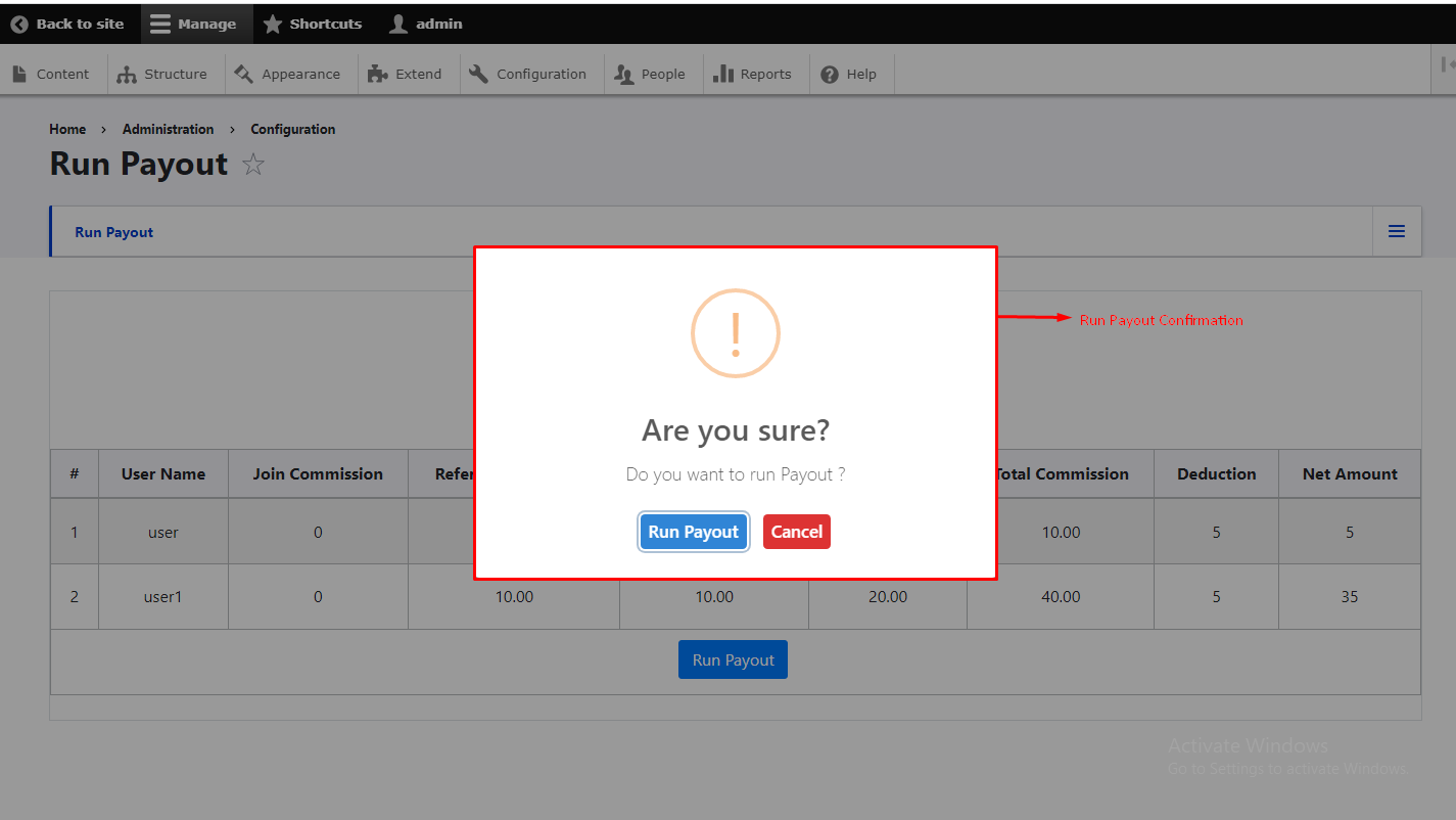 - Confirmation PopUp-> if you click yes then run payout amount otherwise cancel run payout process as show in below figure.