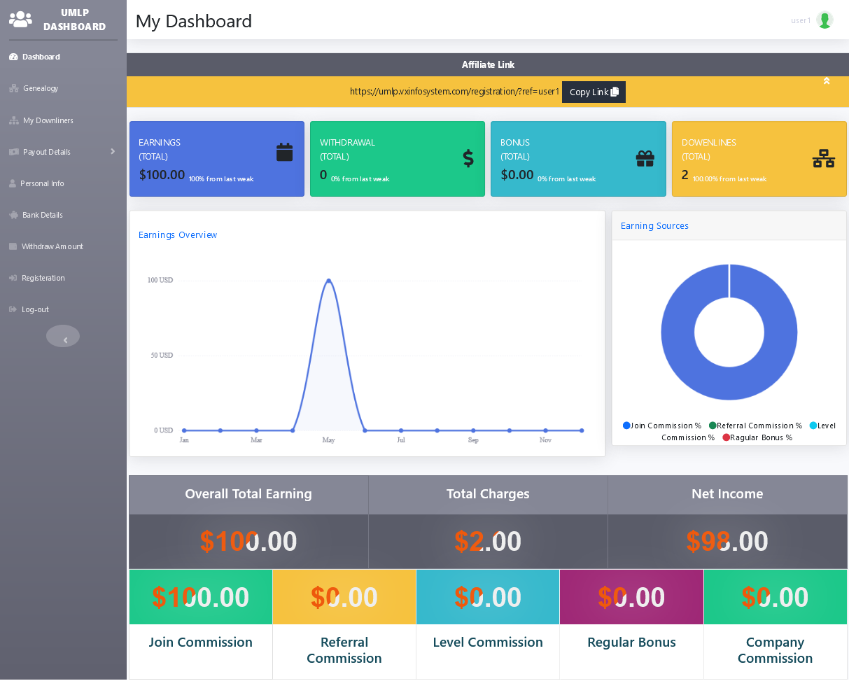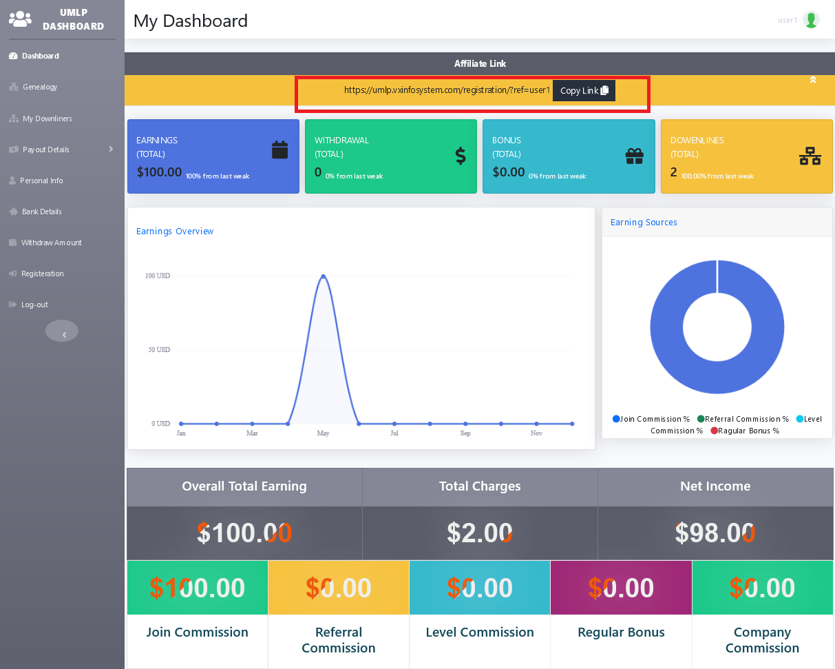 - My Downliners Page --> If you want to give the referral commission amount to referrar, when new user join the plan then enable it. Or percentage / Fixed.