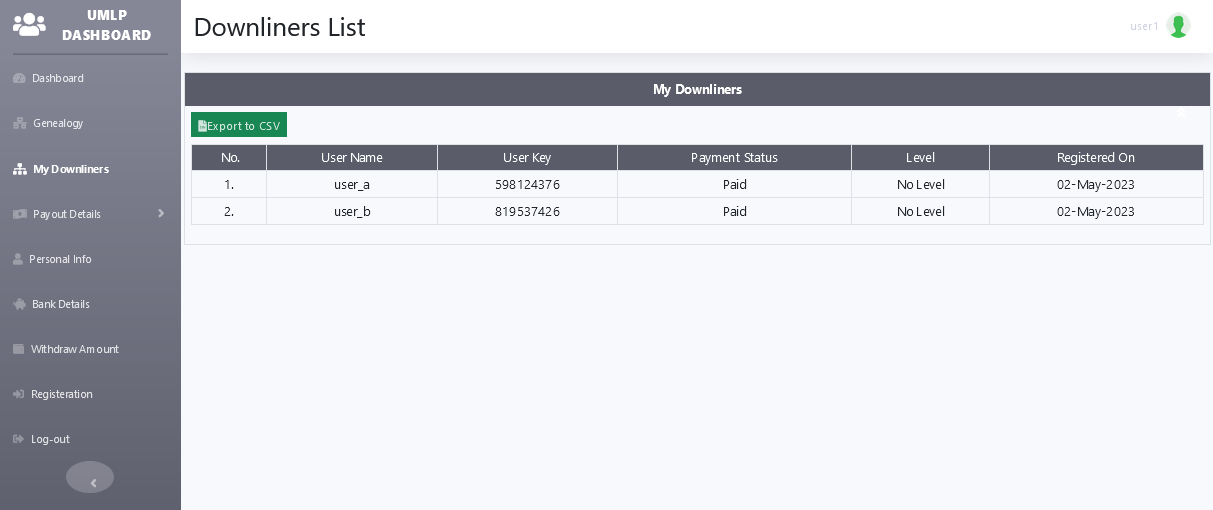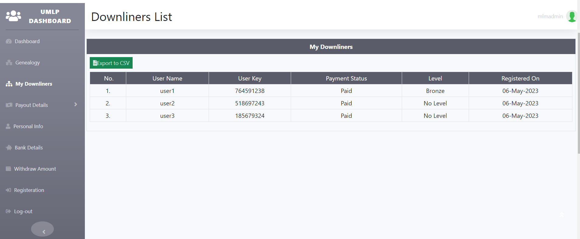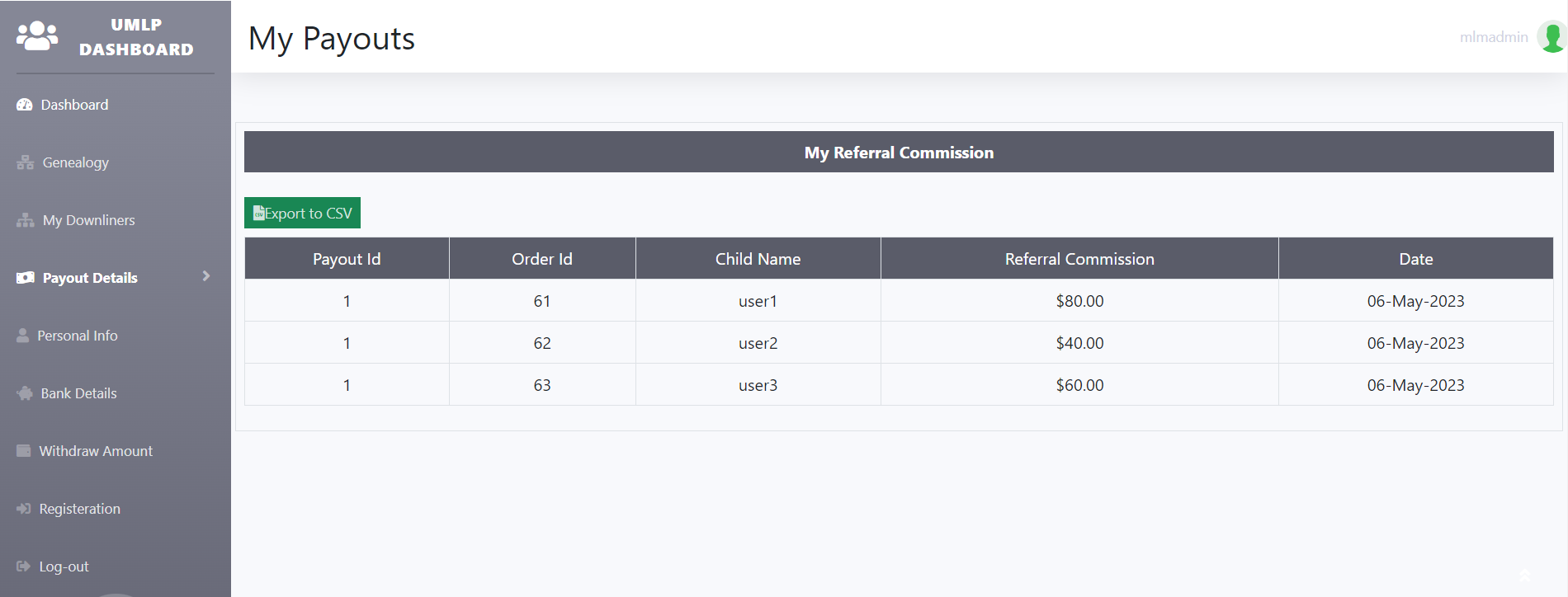 - Go to Unilevel MLM LearnPress --> Payout report. here you will see master payouts listing with total commissions, bonuses and deductions.