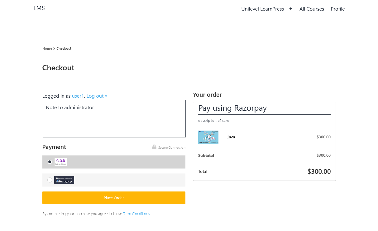 Unilevel MLM LearnPress -> you will Add Any Addons like Razorpay by payment Gateway