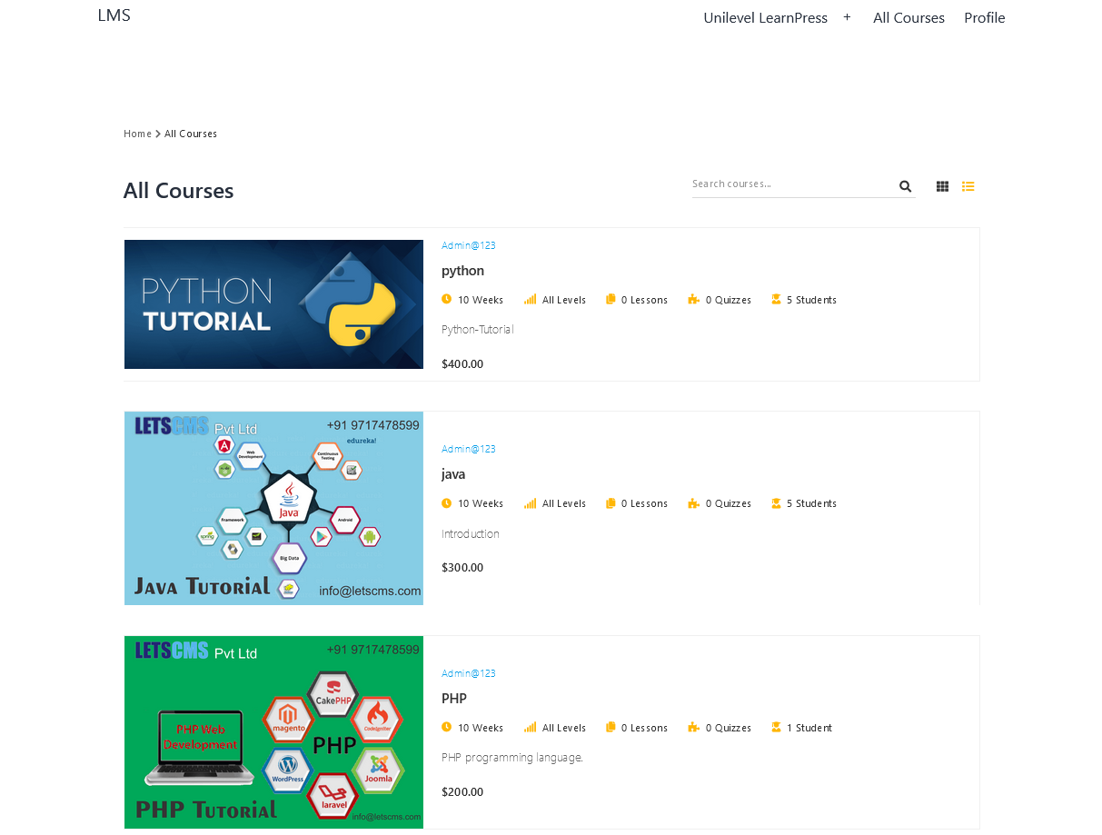 - Letscms Unilevel MLM Plan for LearnPress -> ShortCode Pages.