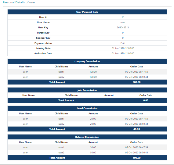 - Distibute commission : Here you have the report of all users commission >here you check how much level,referrel,join commisson user get.